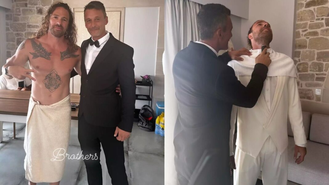 Από την αρχή η οικογένεια και οι φίλοι του ζευγαριού ξεκίνησαν τις προετοιμασίες. Η αδερφή του Γρηγόρη Μόργκαν, Στεφανία, μοιράστηκε στιγμιότυπα από την προετοιμασία του γαμπρού, από τη μάσκα ομορφιάς μέχρι το λευκό κοστούμι του γαμπρού και ποζάρει με φίλους και οικογένεια.