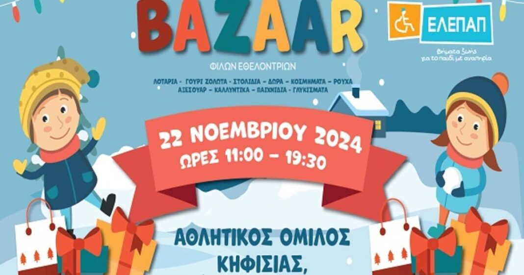 Το Bazaar θα πραγματοποιηθεί στις Παρασκευή 22 Νοεμβρίου 2024από τις 11:00 το πρωί έως τις 7:30 το απόγευμα, στον Αθλητικό Όμιλο Κηφισιάς (Τατοΐου 49 & Π. Μελά, Κηφισιά).