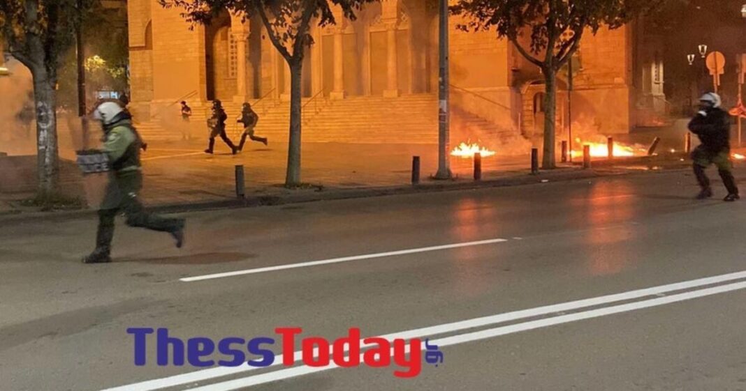 Σύμφωνα με το ThessToday, οι αποκομμένοι από την πορεία επιτέθηκαν με πέτρες και αυτοσχέδιες βόμβες μολότοφ στις διμοιρίες της ΕΛΑΣ που είχαν στήσει φράγμα στην Εγνατία κοντά στην ΕΥΑΘ.