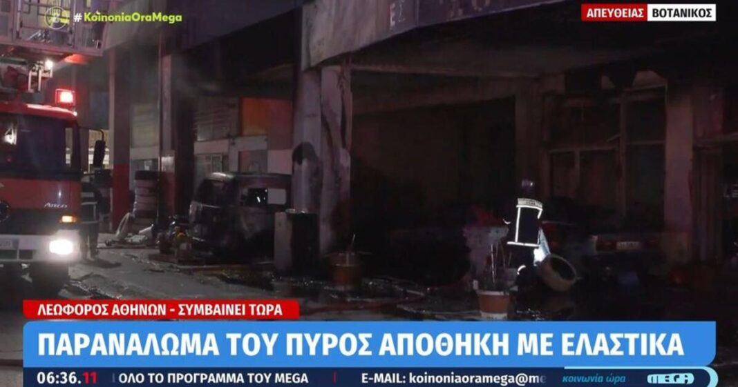 Συναγερμός ειδοποίησαν οι πυροσβέστες νωρίς τη Δευτέρα, λόγω φωτιάς που ξέσπασε σε αποθήκη ελαστικών στο Λεωφόρος Αθηνών.