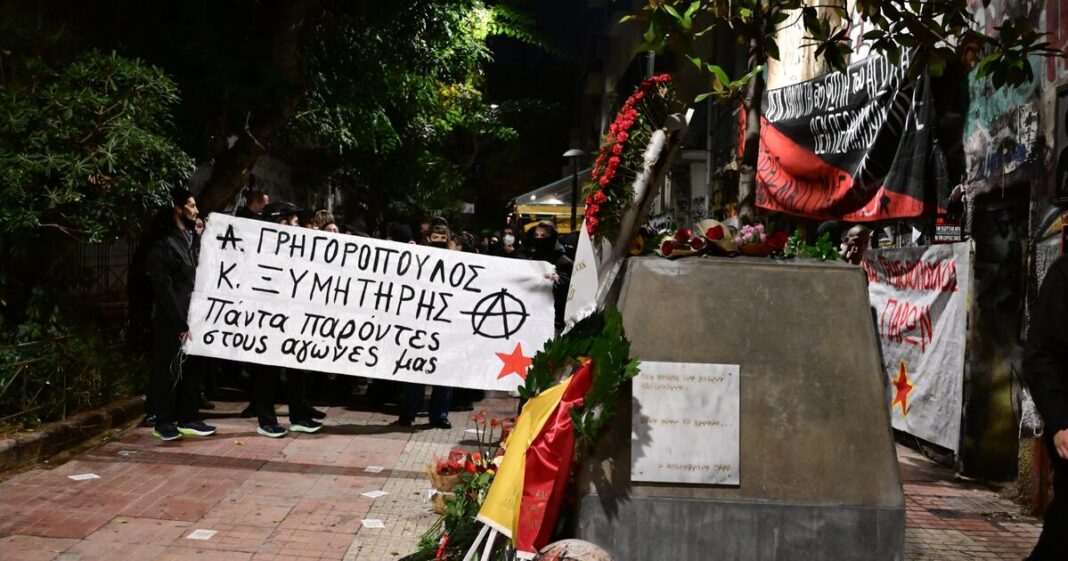 Όπου, πριν από δεκαέξι χρόνια, το Αλέξης, 16 ετών ηρέμησε αφού πυροβολήθηκε από τον ειδικό φρουρό Επαμεινώνδα Κορκονέα στην αγκαλιά του φίλου του, Νίκος Ρωμανόςφτάνουμε σήμερα, όπου η κρατική καταστολή συνεχίζεται αμείωτη.