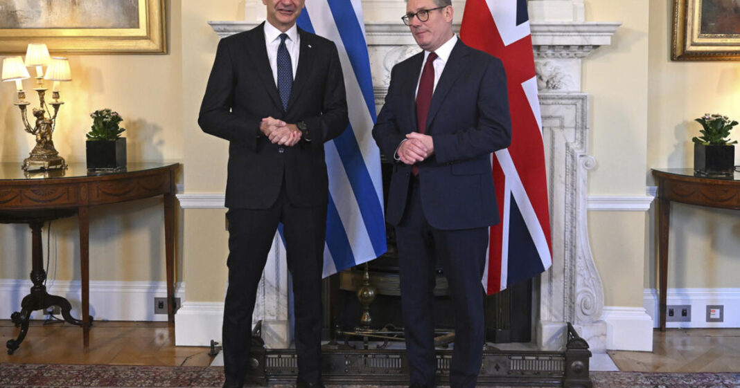 Ολοκληρώθηκε η συνάντηση του Έλληνα πρωθυπουργού Κυριάκου Μητσοτάκη με τον Βρετανό ομόλογό του Keir Starmer έχει Ντάουνινγκ Στριτ. Η συνάντηση διήρκεσε περίπου 40 λεπτά και ο κ. Μητσοτάκης αποχώρησε χωρίς να κάνει δήλωση.
