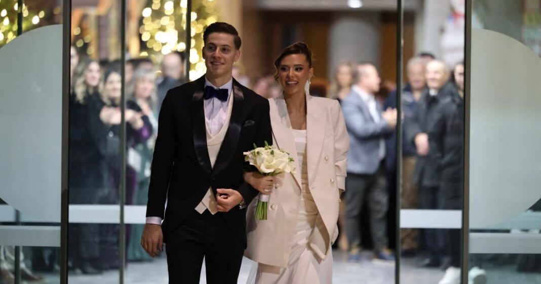 Με πολιτικό γάμο ο Γιάννης Κωνσταντελιάς παντρεύτηκε την αγαπημένη του Χριστίνα, έχοντας στο πλευρό του τους συμπαίκτες του στον ΠΑΟΚ, την οικογένεια και τους φίλους του.