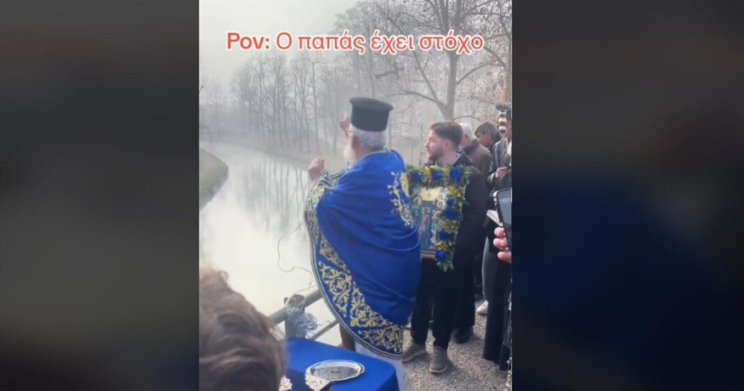 Το σημερινό βίντεο από Τρικάλωνόπου κατά τον εορτασμό των Θεοφανείων, α παπάς έριξε κατά λάθος τον σταυρό στο κεφάλι ενός πιστού.