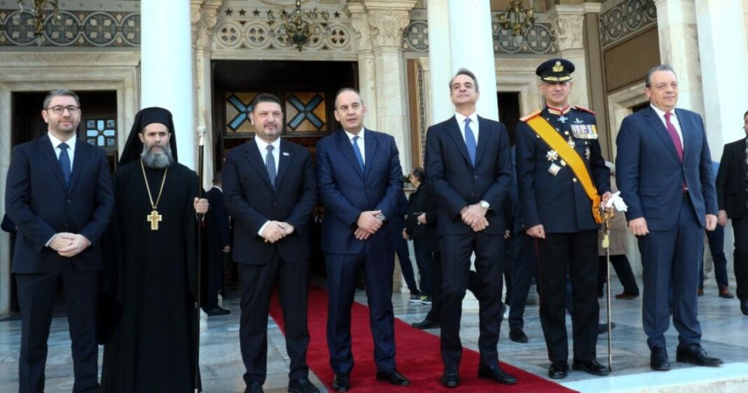 Τους υψηλούς προσκεκλημένους υποδέχθηκε στην είσοδο της Μητρόπολης ο Περιφερειάρχης Αττικής Νίκος Χαρδαλιάςμαζί με τον Πρωθυπουργό Κυριάκο Μητσοτάκη, τον Α’ Αντιπρόεδρο της Βουλής Γιάννη Πλακιωτάκη, τον Δήμαρχο Αθηναίων Χάρη Δούκα, τον Αρχηγό ΓΕΕΘΑ Στρατηγό Δημήτριο Χούπη και την Αρχιεπισκοπή Αθηνών π. Βαρνάβας Θεοχάρης, ως βετεράνος του στρατού απέδωσε τα σέβη του.