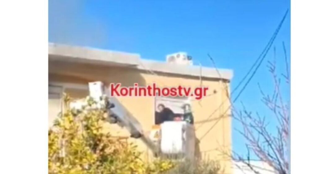 Οι άνδρες της Πυροσβεστικής Κορίνθου με την βοήθεια γερανού οχήματος της ΔΕΗ που έτυχε να περάσει, ξεκλείδωσαν οι δύο γυναίκες.