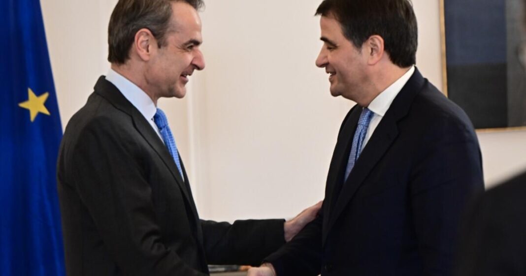 Κατά την έναρξη της συνάντησής τους, ο Κυριάκος Μιτσότακις και ο Ραφάλε Φιτάτο είχαν τον ακόλουθο διάλογο: