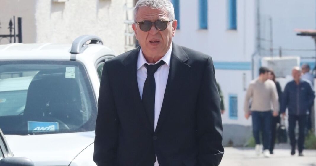 Ο Costas Koklas Έδωσε το παρόν το μεσημέρι την Τετάρτη (12/3) κατά τη διάρκεια της κηδείας της Κωνσταντινού Στο Aigio και συνθλίβει τον καλό φίλο του.