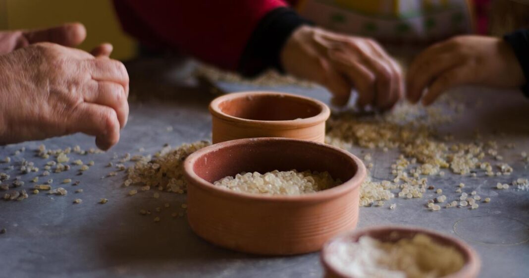 Η μαστίγια συλλέγεται με παραδοσιακό τρόπο. Οι εργαζόμενοι ισοπεδώνουν το χώρο γύρω από το δέντρο και Σγκαλέτα τον κορμό σε συγκεκριμένα σημεία. Το στόκο αρχίζει να ρέει και Σταθεροποιούνται περίπου 15 ημέρες Και είναι έτοιμο για τη συλλογή.