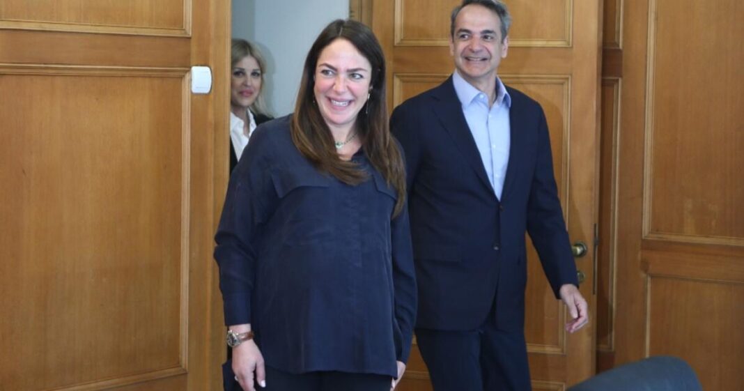 Ο κ. Mitsotakis χαιρετίστηκε από τον Υπουργό Domna MichaelidouΑντιπρόεδρος Elena Rapti και προσωπικό του υπουργείου.